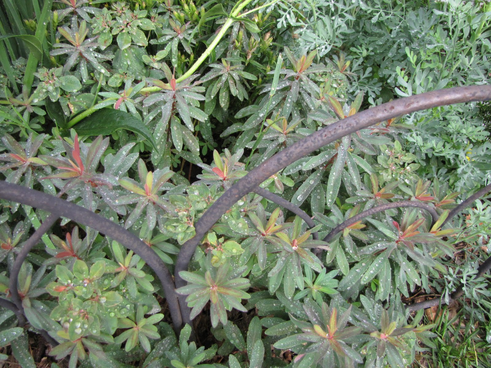 The euphorbia, 'Bonfire' in the bed in front of the vegetable garden is looking awesome. I found another one to plant early in the spring. This one is growing faster, so is now larger than the other than it was when I first planted it. Hopefully, they will be closer in size next year.