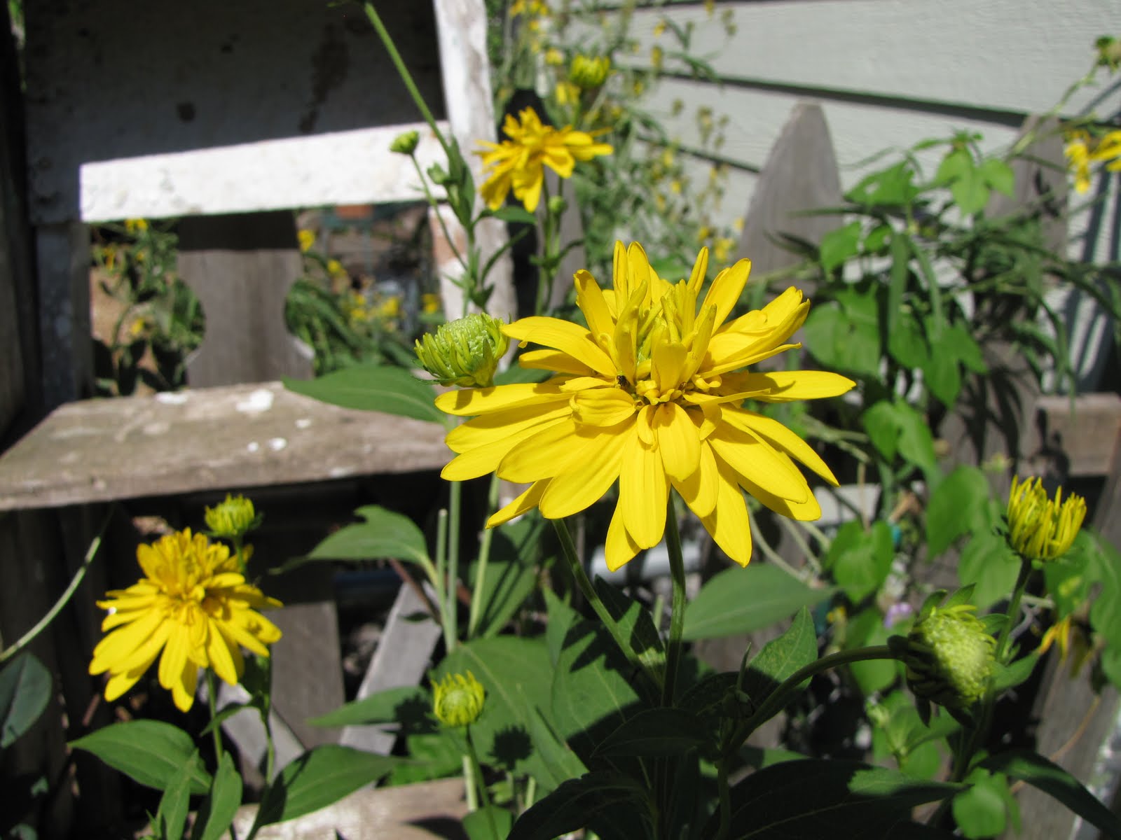ReplyDeleteI have Golden Glow, too. I got it from my MIL and also googled it years ago and loved the outhouse plant reference. I love how you have it growing against a greyed fence.