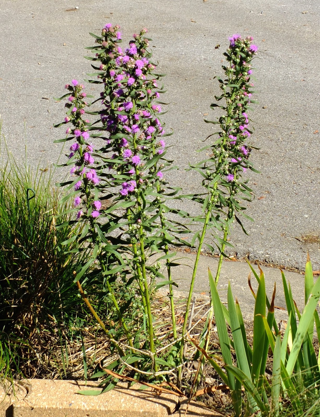 I cut back the liatris aspera in this curb area in the spring. I'm glad it took it fine, and is blooming.